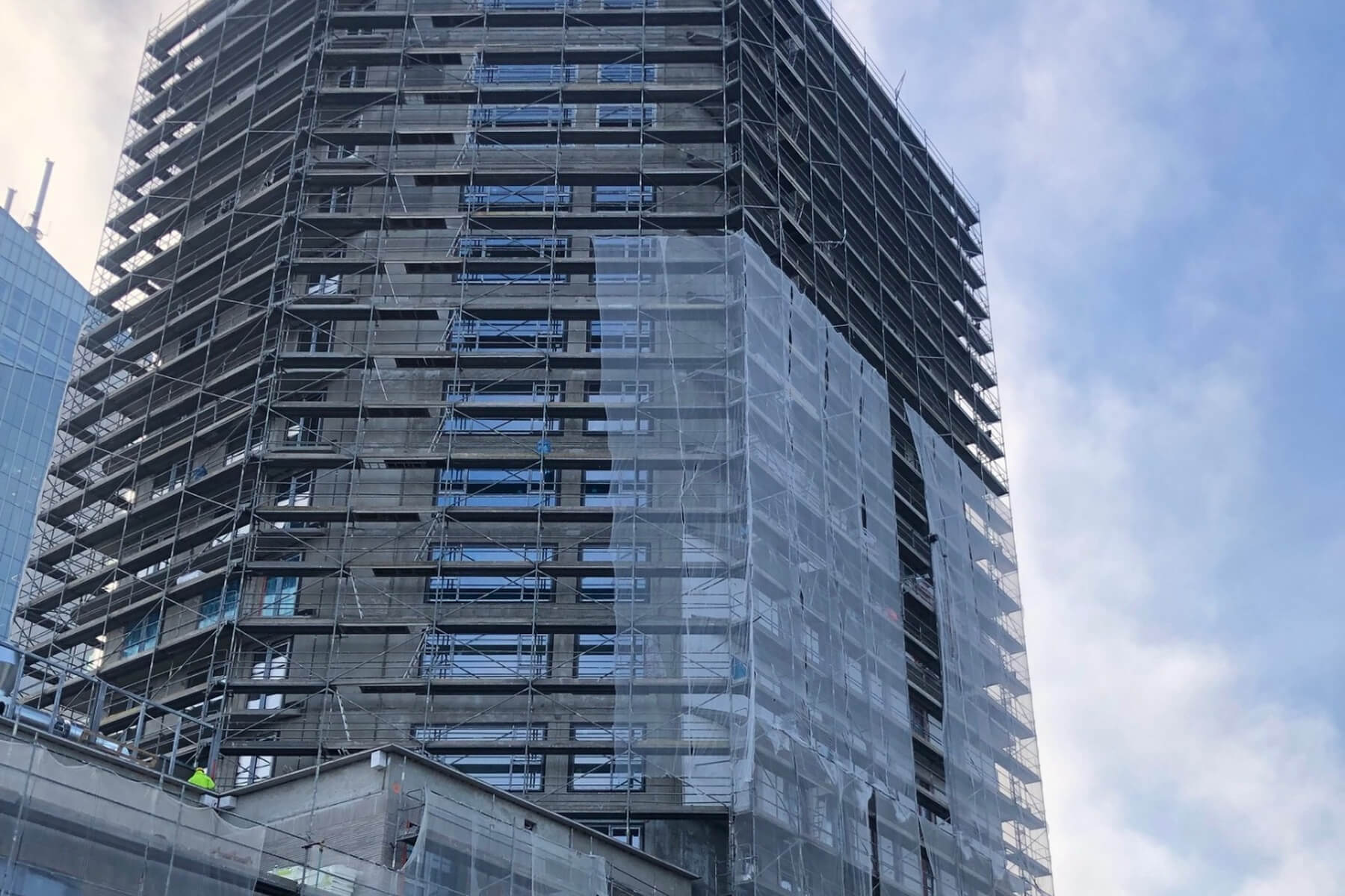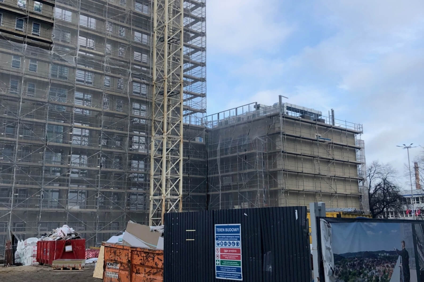 W prestiżowej inwestycji Olivia Pulse w Gdańsku prace wchodzą w etap intensywnych robót elewacyjnych i wykończeniowych.